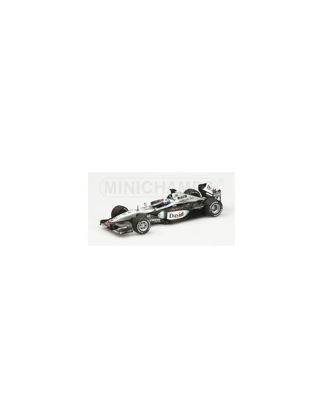 Jahrgang: 2001, Rennserie: Formel 1, Fahrer: David Coulthard, Startnummer: 4, Farbe: silber, Hersteller: Minichamps